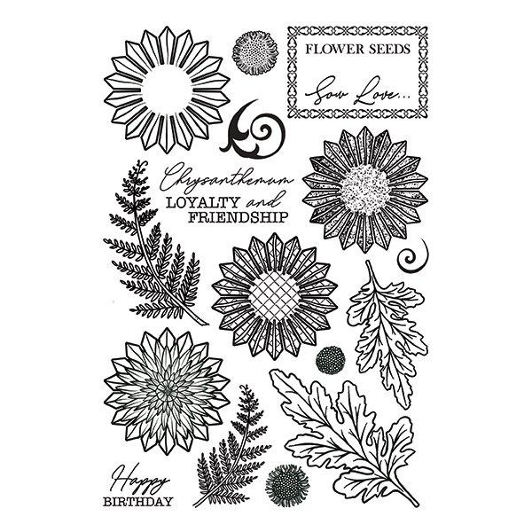 The Forever Flowerz Chic Chrysanthemums A5 Clear Stamp Set contains 16 stamps ideal for use in conjunction with the Forever Flowers: Chic Chrysanthemums Die Set.