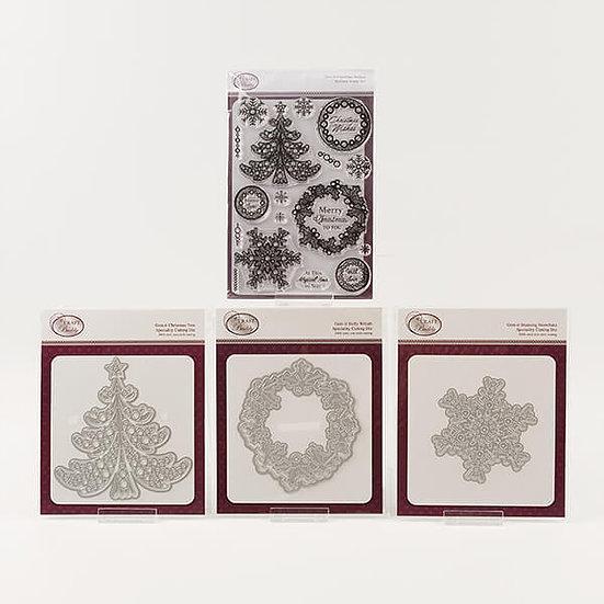 • 3 x Craft Buddy Gem It Dies - Christmas Tree, Holly Wreath, Stunning Snowflake