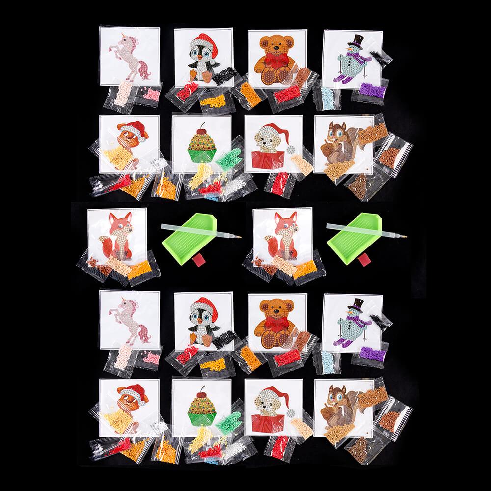 18 x Small Crystal Art Motifs - 9 Designs - 2 of Each Design - Designs Include Fox, Bear, Dog, Cupcake, Squirrel, Snowman, Penguin, Unicorn and Puppy